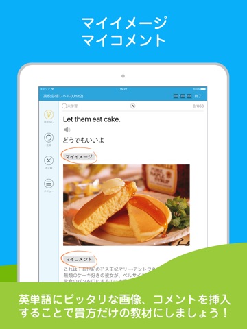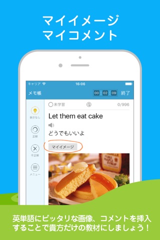 英単語にピッタリな画像、コメント、音声を挿入することで記憶を深めることができます!