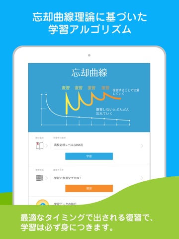 「忘却曲線理論」に基づいた、復習を重視した効率学習。最適なタイミングで出される復習で学習は必ず身に付きます。