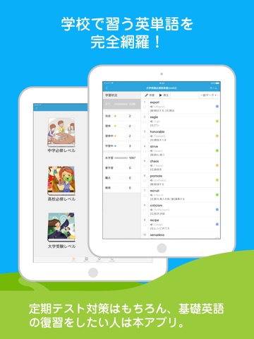 ▼6つの機能で学生必修英単語学習が簡単に・楽しく・定着します。