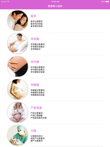 包含:备孕,孕早期,孕中期,孕晚期,产前准备,分娩,产后恢复,新生儿护理,新生儿喂养,0-1岁幼儿科学护理,1-3岁幼儿科学护理,3-6岁儿童科学护理。。。等一系列专业知识。