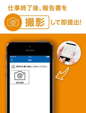 現場到着や業務完了など、ランスタッドへの各種報告はアプリから送信するだけ。従来行っていたオフィスへの報告書提出の手間が省けます。