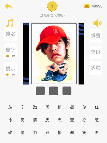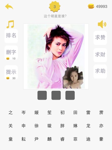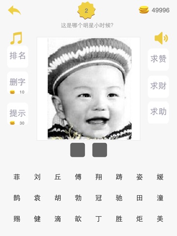 - 根据明星相片,从若干备选字中拼出正确的明星名字!
