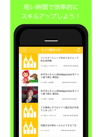 シンプルでわかりやすいUIと簡単操作でサクサク読めるドイツ語学習に特化した無料の学習アプリです。