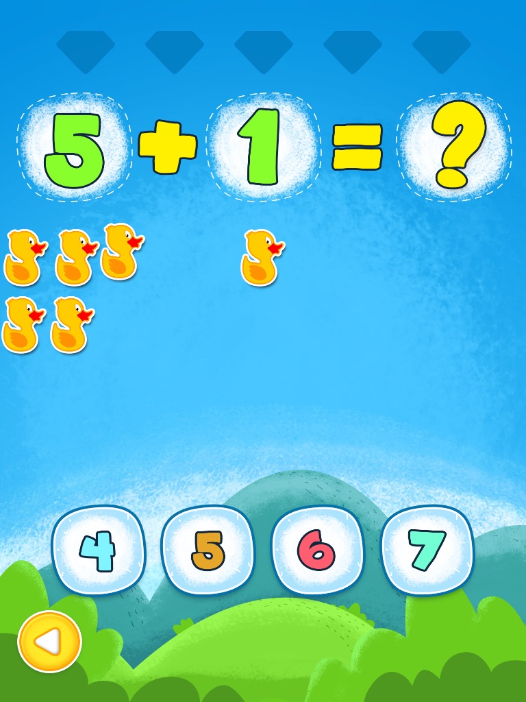 The app is split in nine levels. In every level there are six equations, which the child has to solve.