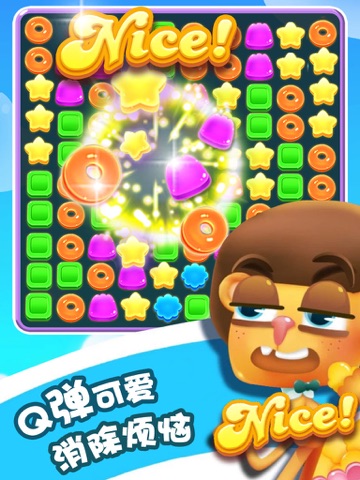 游戏在传统的消星星游戏上做出了美术和玩法上的改进,画面更加Q萌可爱,玩法上,新增了免费道具,和钻石冰块玩法,即保留了传统消星星玩法的趣味性,又在原有玩法上增加了更多的变化,惊喜不断,如果你是消除玩家,开心糖果消消乐是你不能错过的游戏哦!