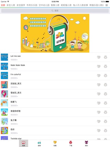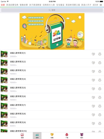 我们为0-6岁宝宝精心挑选了千余个适龄宝宝学习的英文音频、视频节目,全免费!无广告!可下载!粑粑麻麻们快来使用吧!
