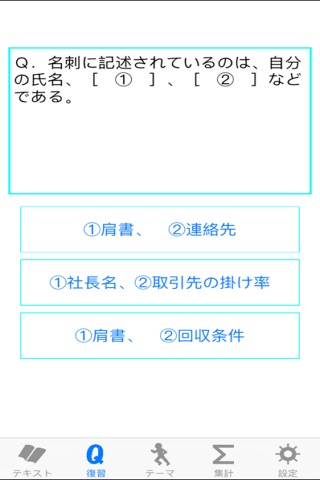 機能として、テキスト、復習、ランキングなどがあります。