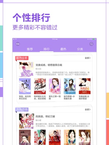 | 7 | 热门小说:畅销言情、历史、武侠小说 | #15 | ||