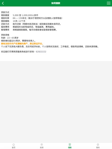 芒果网贷承诺严格按照国家各项P2P平台管理规定,不设资金池,绝不触碰投资人资金。借款标的物清晰明确,支持投资人随时到本公司查看抵押房产手续,专注沈阳地区房产投融资中介,做最正规平台,忠于客户对芒果品牌的信任,对客户资金负责,如投资标的发生违约本公司承诺先行垫付。