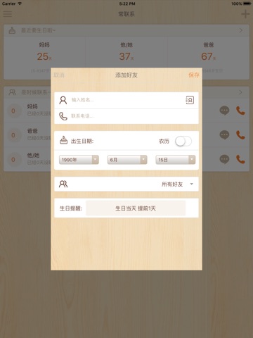 生日是一年一次的期盼,是一次美好诞生的纪念。朋友是互相的牵挂,友情也需要常联系去经营。常联系帮您记住每一个好友的生日并定期提醒您与好友联系,让朋友和亲人感受到你带来的温暖关怀。我们多久没联系了~