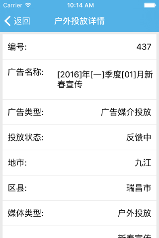 江西省广告传播管理APP旨在建设一个支撑全省广告传播工作的应用系统,可实现广告传播的投放、反馈、整改、统计、实时监控、短信提醒等一系列功能。户外广告供应商或全省渠道负责人,可应用手机APP对所投放广告进行拍照反馈。