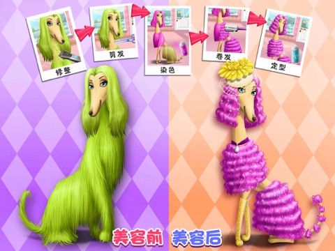 悠优宠物造型来了四位毛茸茸的客人—— 无峰驼,小猫咪,贵宾犬和小狮子。不要让它们等太久哦!体验宠物造型师的乐趣,为你那些毛茸茸的小伙伴们做出超级酷的造型吧!