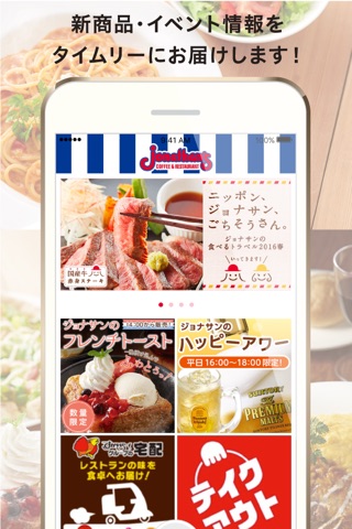 ジョナサンアプリからお得な情報をプッシュ通知等にて配信します。