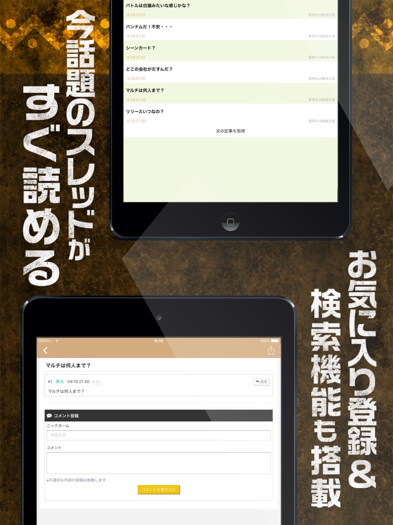 攻略についての質問・相談、フレンド募集やマルチプレイのメンバー募集など様々な用途で活用できる!