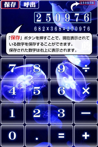 ゆらゆらと深海を泳ぐ、綺麗なクラゲの電卓アプリです。