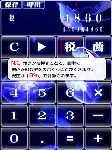 税込み一発表示が出来ますので、スーパーの買い物などで使って、くらげに癒されてください。