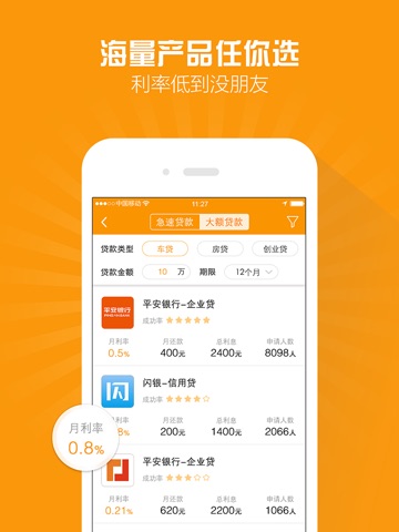 【急速小贷】跟全国主流的线上贷款产品都有合作,无需借款人再次下载放款产品的APP,在惠借APP中即可在线一站式完成整个申请流程,提高了借款人借款效率,同时也提高了放款端放款效率。