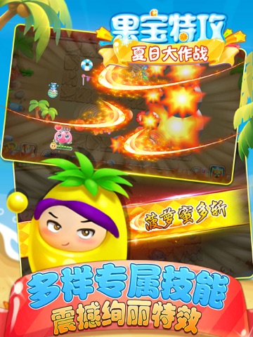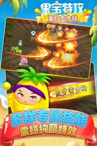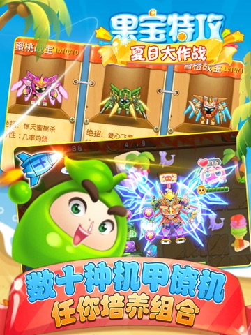 让基地反攻的守卫者、独特的天气系统和随机事件,给你一个充满未知乐趣的全新水果世界!可移动的强大果宝机甲与僚机火力完美配合,给你一个更加丰富有趣的塔防!众多关卡与塔座、怪物与BOSS,更有合体技能与机甲绝招的强大支持!四大机甲还原动画、僚机升级搞定BOSS、彩莲养成强悍防御……无比丰富的游戏内容——果宝特攻,给你前所未有的畅爽塔防体验!