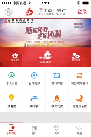 自贡银行手机银行是我行倾心为您打造的移动互联网综合服务平台,传达我行“以客户为中心”的服务理念,融合手机智能特色,向您提供包括账户管理、投资理财、汇款支付、生活缴费等一站式线上金融服务。新版手机3.0焕新起航,为您打造更加安全可靠、功能完备、特色突出、方便快捷的移动互联网金融新生活。
