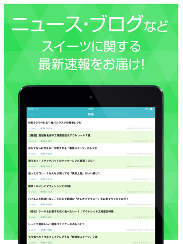 さまざまなサイトから配信されるスイーツの話題をまとめてチェックできます。