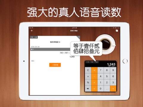 ◆ 草稿纸/便签/历史记录功能,记录下您的所有计算步骤,并可以保存成文档,备查。