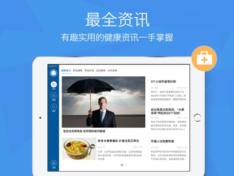 介绍男性健康的相关知识和内容。通过算法猜出您的兴趣,向您推荐最适合您的男性健康知识,同时您也可以向医生进行咨询。