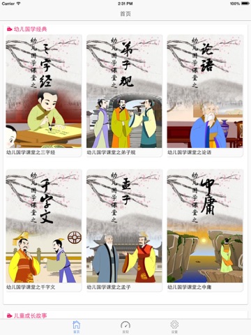 本应用包含国学中经典的三字经、百家姓、千字文、弟子规、论语、孟子等经典国学巨著,您能教孩子边看视频变学国学!