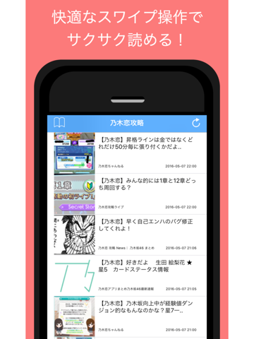 シンプルでわかりやすいUIと簡単操作でサクサク読める乃木恋の情報に特化した無料の攻略アプリです。