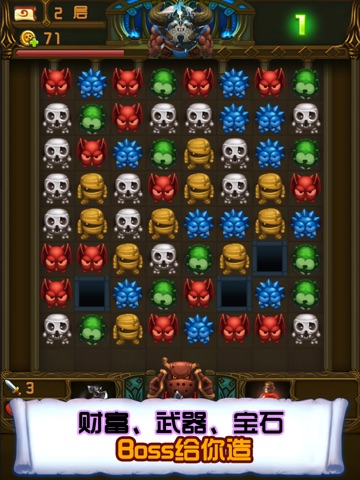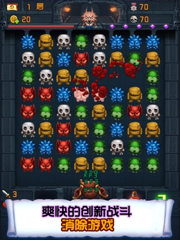 4,在点击你不相要的怪物后,以之相邻的四个怪会被激活,如果步数用完结算时不可以消除,这些激活怪将攻击英雄。