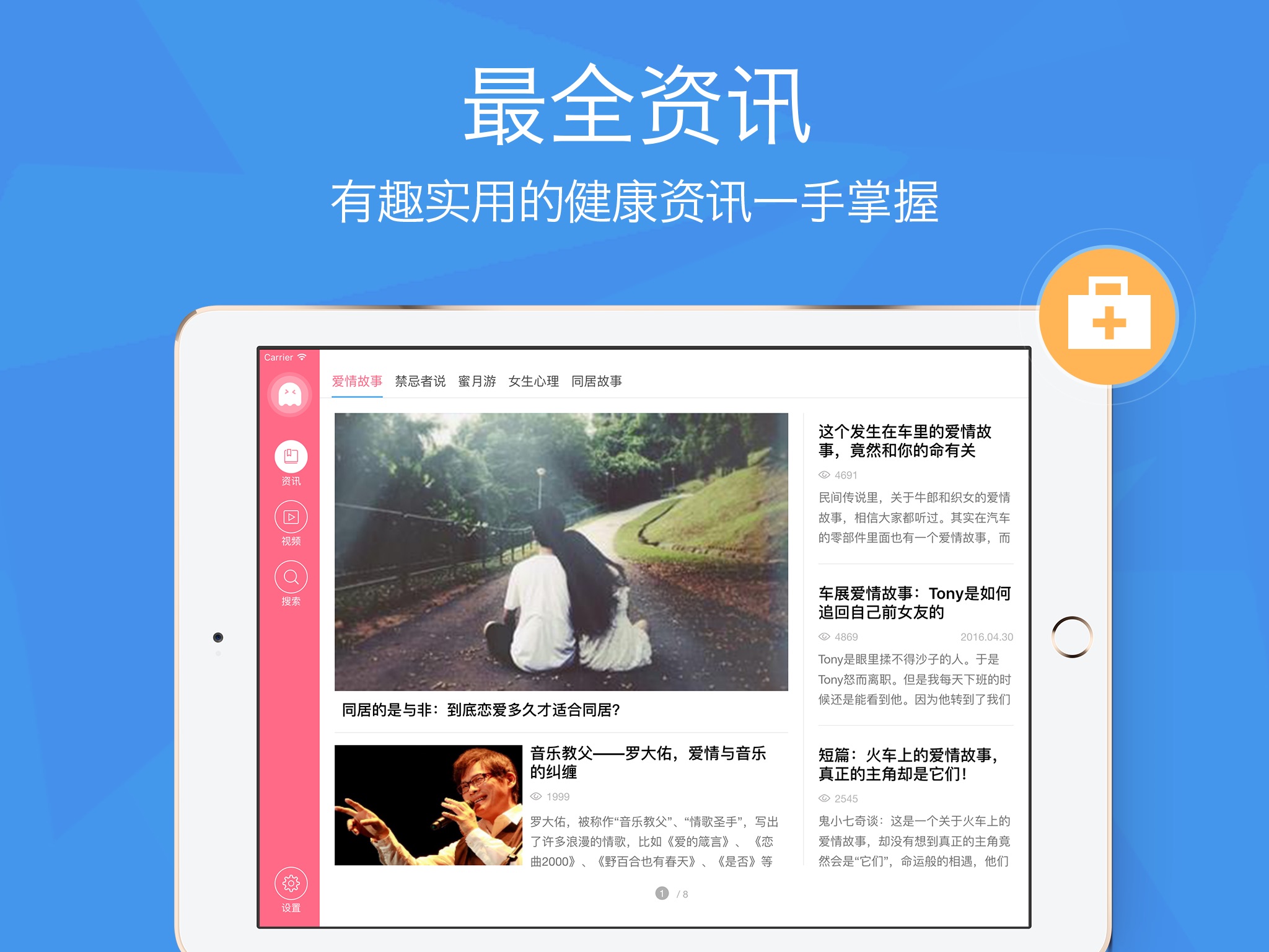 介绍两性健康的相关知识和内容。通过算法猜出您的兴趣,向您推荐最适合您的两性健康知识,同时您也可以向医生进行咨询。