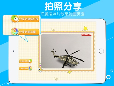 当今的科技改变了我们的生活,我们努力为孩子带来欢乐,愿孩子们健康成长!育桦科技出品的《玩具魔盒》采用了当下热门的AR(增强现实)技术,结合先进3D渲染科技,实现了3D飞机射击、动物3D呈现,让孩子们最喜欢的飞机、动物在屏幕上神奇的出现...只要用手机扫描一下卡片,卡片中平面的动物瞬间变成了3D立体,并且我们还对应每个动物编辑了知识讲解,达到寓教于乐的效果,带给孩子全新的交互式体验!