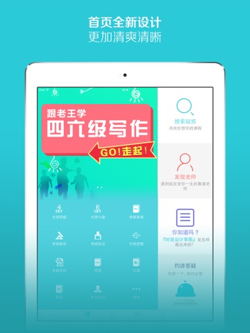 最新约讲功能(智能学习问答交流),是针对考研学生在学习、做作业中遇到的难题、难懂知识点等可以老师、学霸、过来人提问,拍照试题提问,好老师亦可以微视频的方式解答、答疑、互动交流、答案解析、知识拓展延伸,让学生更深一步的掌握知识技能。快速知识问答,将难点消灭,突破弱科,高效提分。