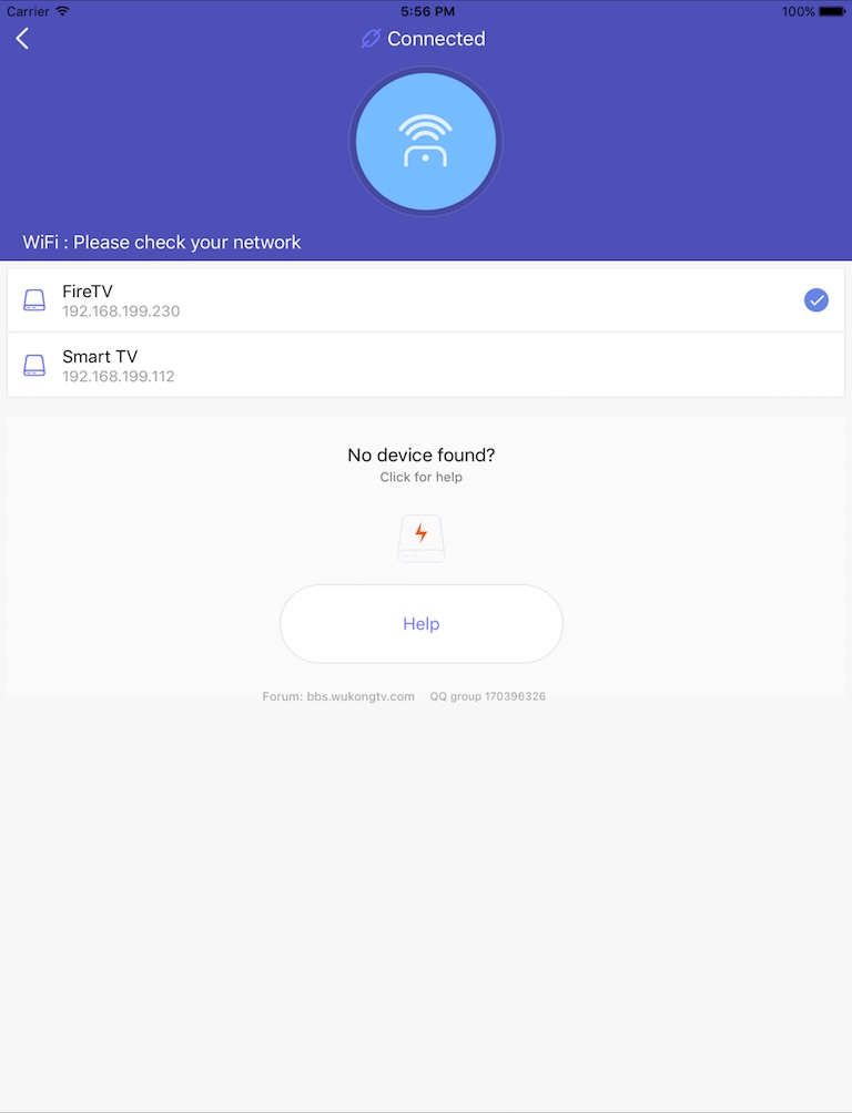2.手机上安装悟空遥控器后会自动搜索您的电视/盒子,点击连接即可使用。