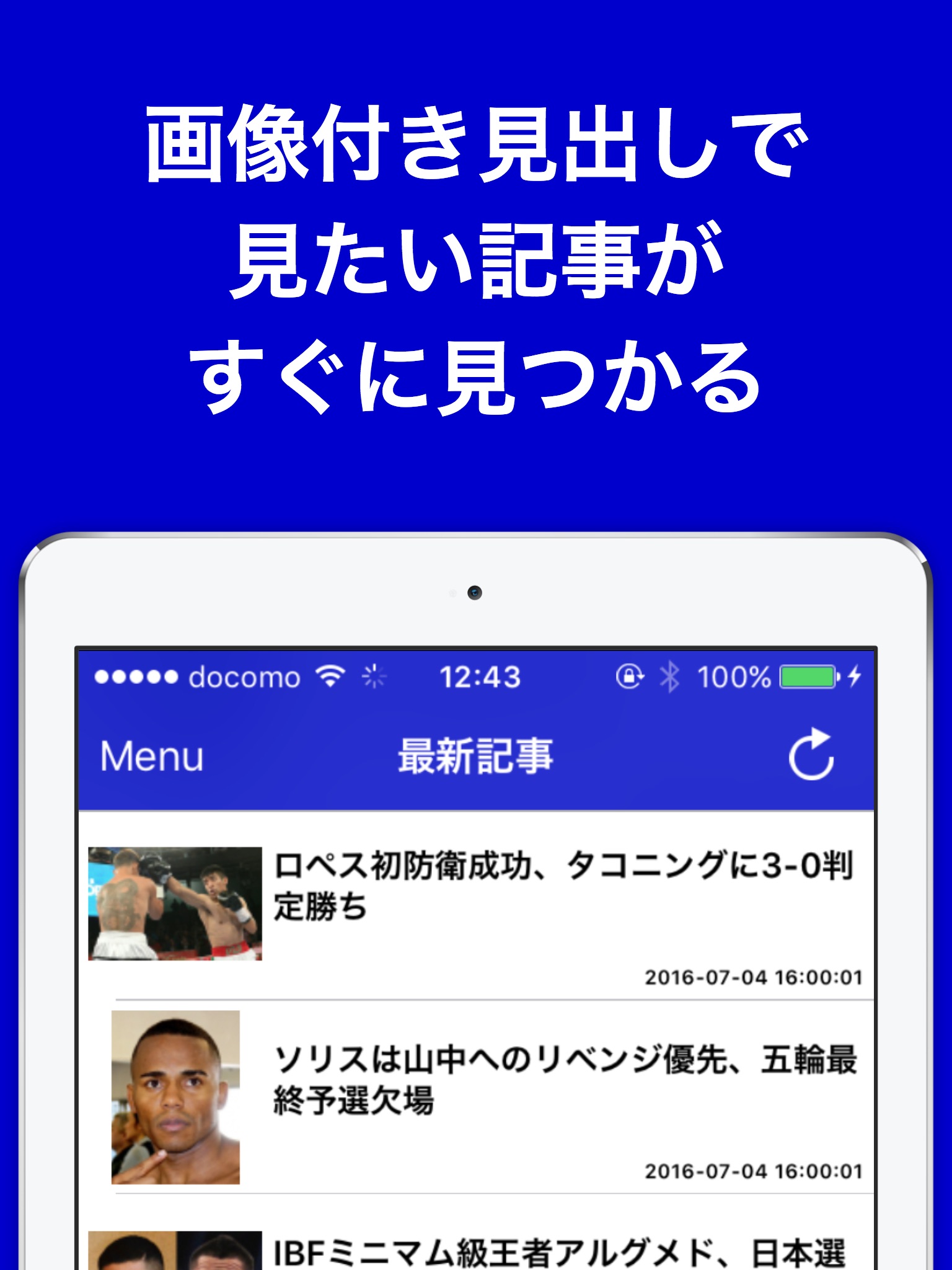 1タップの超簡単操作で最新のボクシングニュースがサクサク閲覧可能!