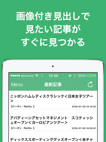1タップの超簡単操作で最新のゴルフニュースがサクサク閲覧可能!