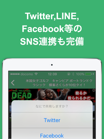 Twitter, Facebook, LINE等のソーシャル連携も万全!どんどんシェアしよう!