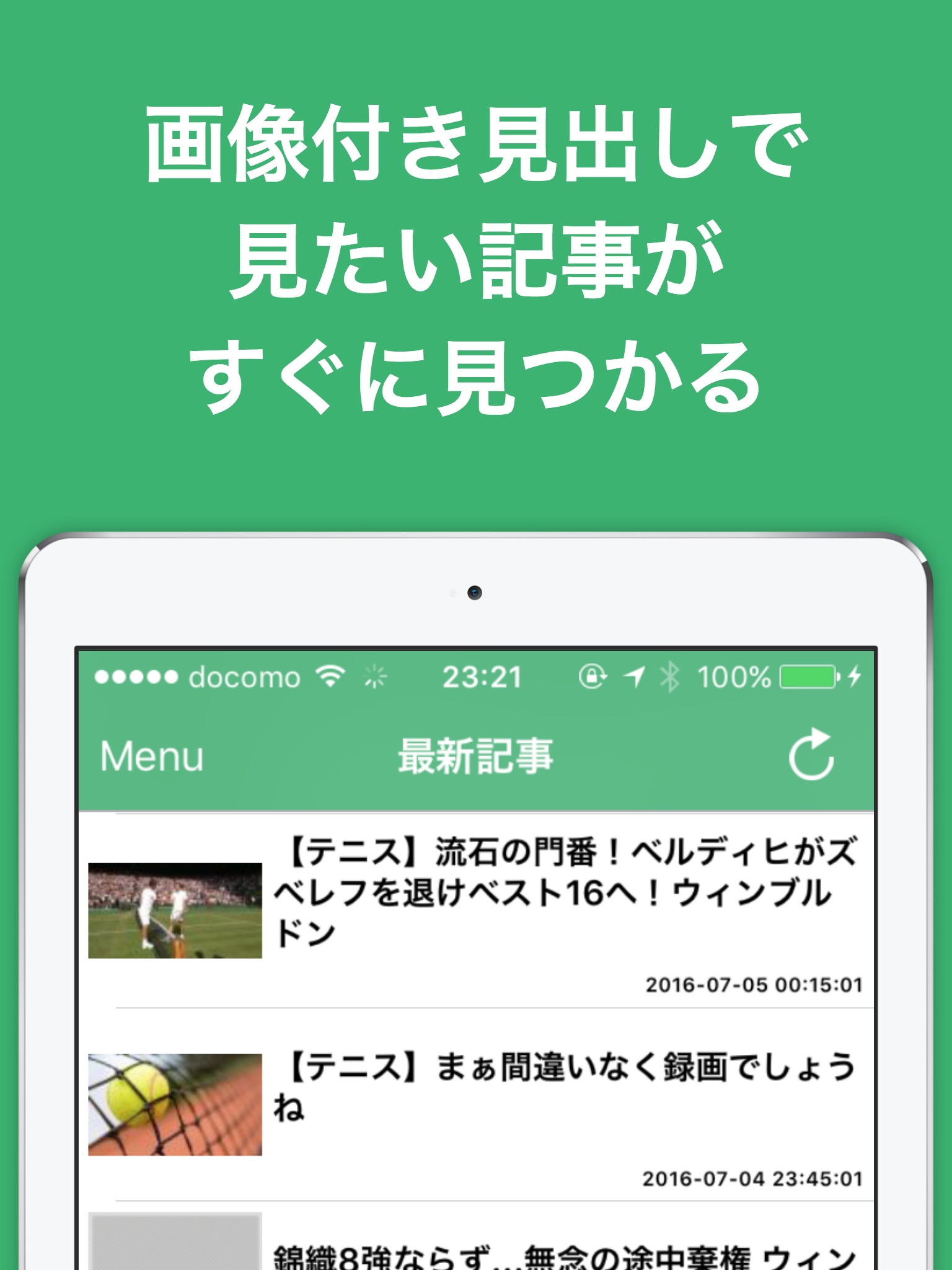 1タップの超簡単操作で最新のテニスニュースがサクサク閲覧可能!