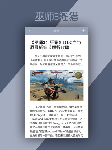 《巫师3:狂猎》是一款角色扮演类的奇幻冒险类单机游戏,《巫师3狂猎游戏攻略》则为大家提供了游戏的各类DLC信息以及特色系统解读,并且为大家提供战斗和任务以及职业系统的详尽攻略!