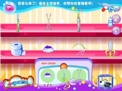 小魔仙的爸爸生病了,他的胃很不舒服,到底是怎么回事呢?检查之后发现胃里有异物,快来帮助医生做手术,把胃里的东西取出来吧。