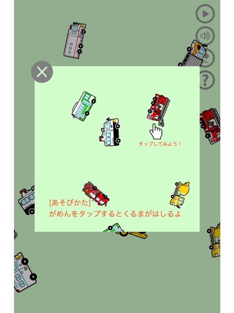 画面をタップすると、その場所を中心に働く車がぐるぐると走ります。