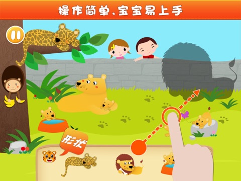 贝乐虎系列推出宝宝认识动物园情景认知游戏(Kids Puzzles Zoo)啦! 这是一款画面精致的儿童教育类认知贴纸游戏,我们设计了小朋友最喜欢的精美场景,里有狮子、大象、羚羊、海龟、鲨鱼、海星等孩子喜爱并且常见的动物,通过孩子跟孩子对话式的语音出题,让小宝贝在场景中体验学习动物、形状、声音、颜色、数字等知识。