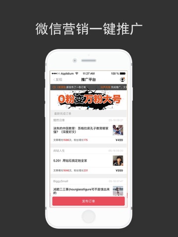 1.一键推广微信广告:在线下单马上涨粉、大号接单立即赚钱。