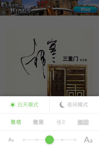 - 支持白天、夜晚两种阅读模式