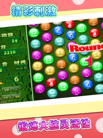 经典模式-所有的瓶盖都会在过关的时候全部消除并重新排出新的瓶盖。当无路可走时游戏失败并结束。