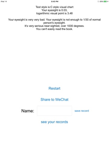 This apps test your eyesight and color distinguish ability. Also , give you a advice to improve you eyesight if you are near-sighted.