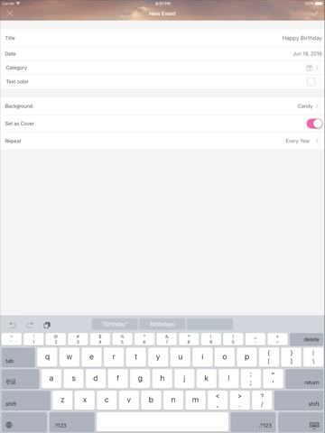 +Seven default categories (Event, birthday, entertainment, holiday, life, love, and study)