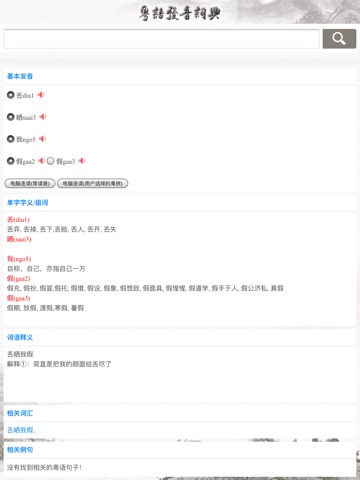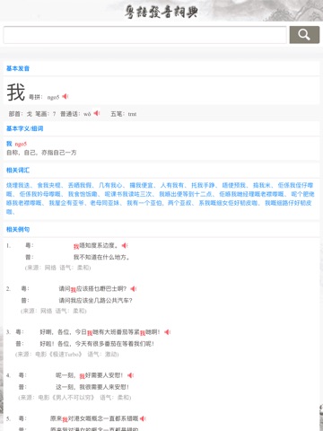 粤语发音字典:国内专业粤语发音字典!- 输入文字即可发音,支持单个文字发音和多个文字的连续发音,是你生活中查询粤语发音和学习粤语的好工具!