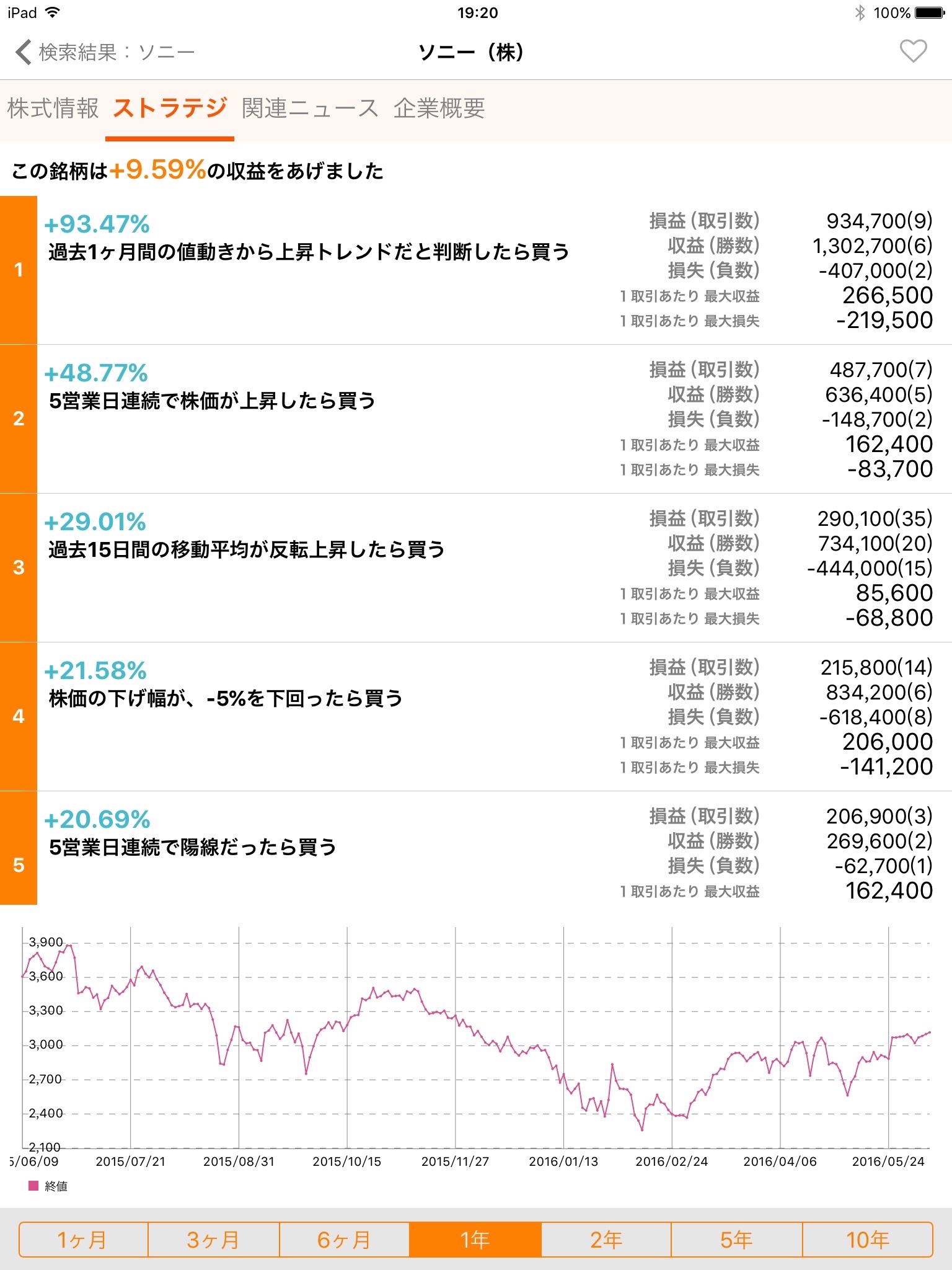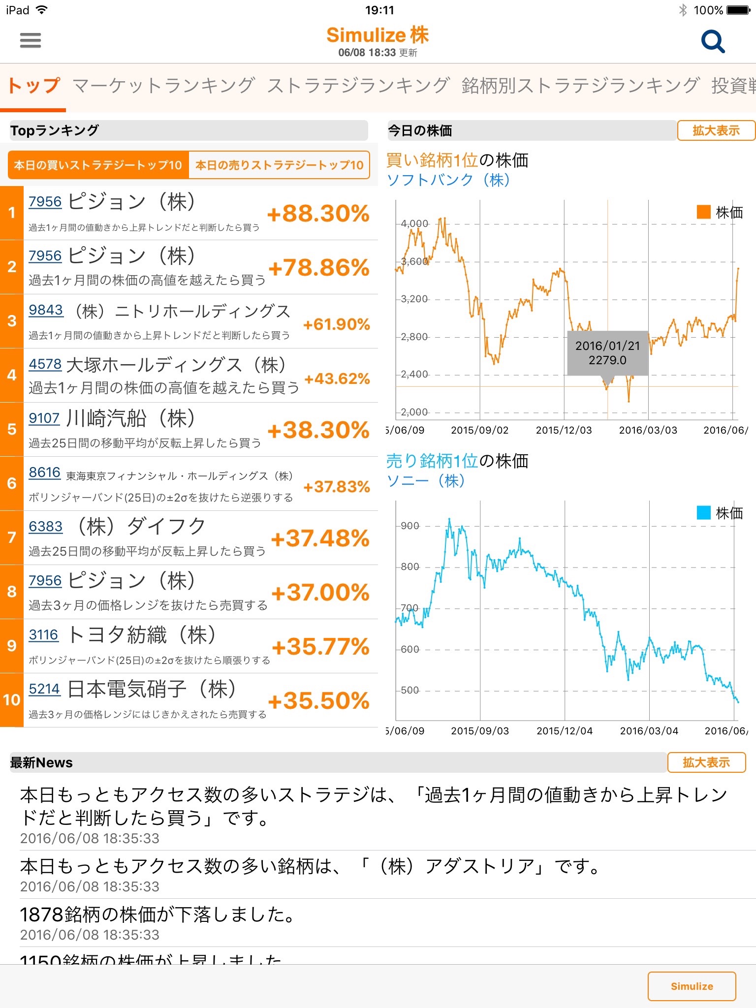 その銘柄にタッチするとシミュレーション結果をみることができます。