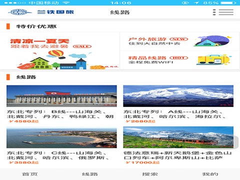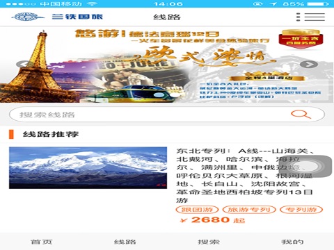 “兰铁国旅”服务平台以满足旅客出行为核心宗旨,通过开展旅游线路预订、酒店预订、旅游专列预订、餐饮服务预订、租车服务等业务,为旅客的出行需求提供一站式服务。国企保障 集团规模 专业品质 一流服务。