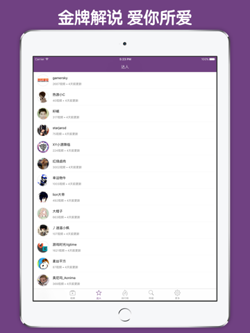 * 视频分类明确,达人推荐,达人最新更新视频一目了然。